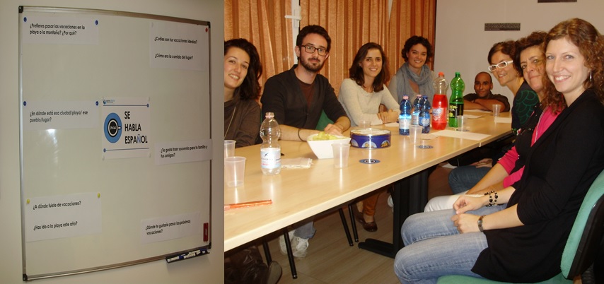 2) groups of foreigners of different countries in classes to become a ‘language café’ integrating Spanish or Basque speaking people, to speak in Spanish or Basque about common topics